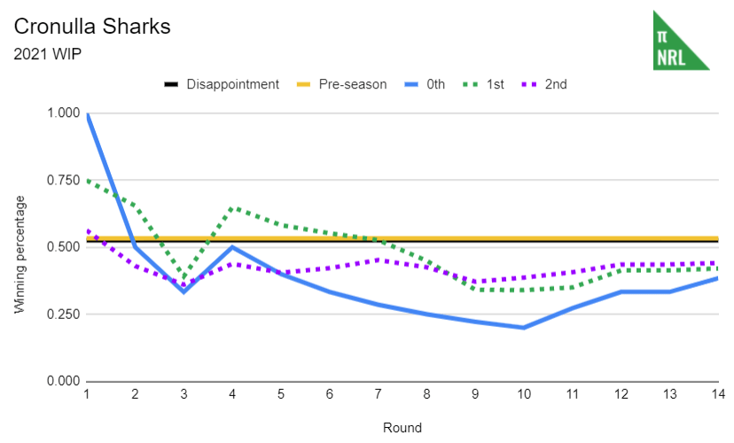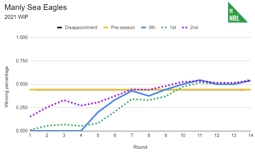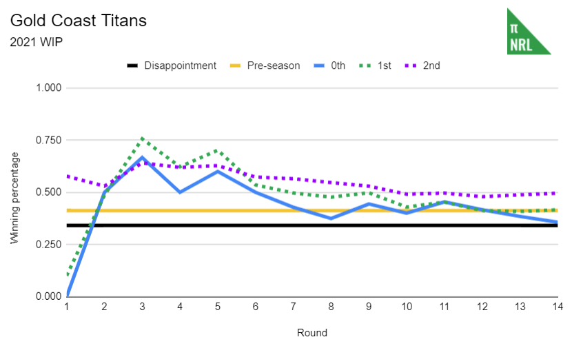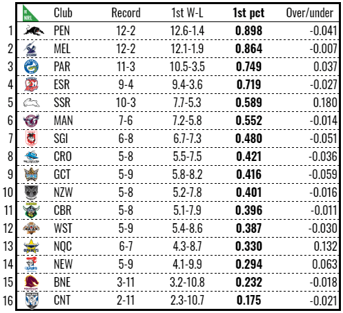 - Actual wins understating year to date performance / potentially tending better – Titans, Panthers, Dragons,
