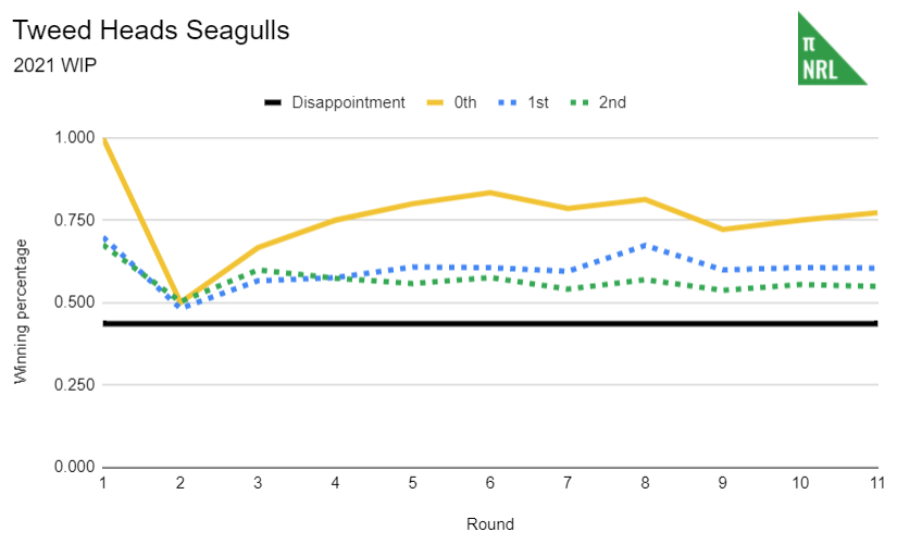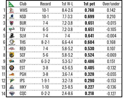 - Actual wins overstating year to date performance / potentially tending worse – Wynnum, Devils, Tweed, Redcliffe, Pride
