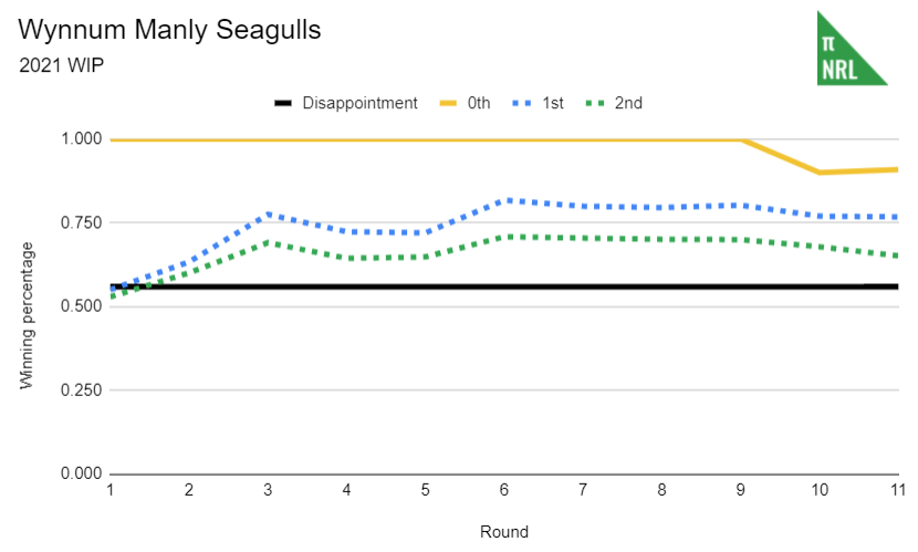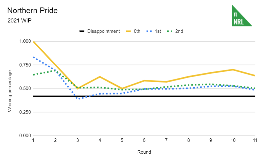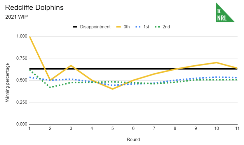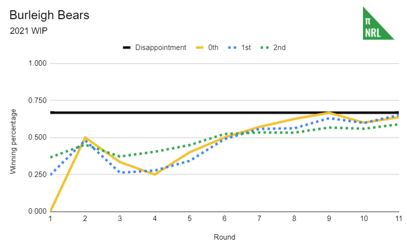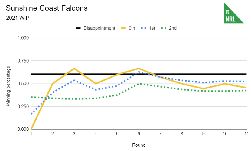 - Disappointment Line – The minimum number of wins for the season to not be considered disappointing by fans, as calculated by the pre-season class (long term performance) Elo rating.