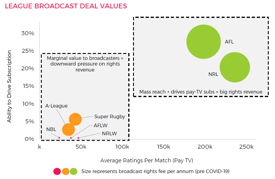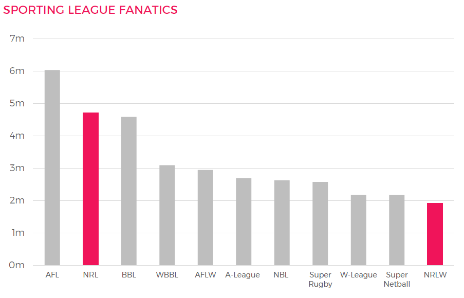 One strange thing to note is that the report states that the NRLW has the fewest passionate fans but also shows that it rates better than Super Rugby, A-League, AFLW and NBL. Gemba seems to have again confused their fan metrics with what actually matters. The NRLW has the least ability to drive subscriptions, because it is bundled with the NRL rights. What is not stated is the commercial impact if NRLW gets its own broadcast deal. The competition could become self-funding and realise its potential. When you think about the NRLW in terms of the failure of the current administration to capitalise on its potential, then this negates the opportunity cost and makes this entire line of argument redundant in the context of expanding the NRLM.