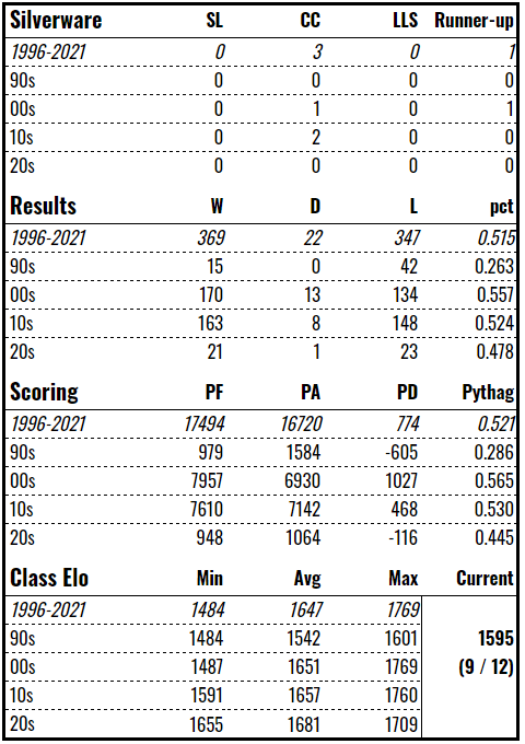 Kane Evans is a so-so import, having accumulated only 3.3 wins above reserve grade form 2014 to 2021, and may be the kind to have a decent showing but I’ll be surprised if he blows the doors off the competition. There’s not a huge amount to write home about, barring the two aforementioned transfers to Cas. Based on their Pythagorean expectation and second order wins, we should probably expect the black-and-whites to still be there or thereabouts but they don’t look as sharp as the other fringe candidates for a finals place.