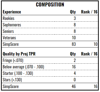 The main mechanism for assessment, in conjunction with the numbers, is to look at each club’s strengths, weaknesses and their opportunities for improvement and see what changes have been made in the off-season that might signal a move up or down the ladder. Sometimes the numbers tell what I think will be an accurate story, sometimes they don’t and that’s why there’s 6,500 words of commentary to go with the graphs. You can take or leave whichever bits you like.