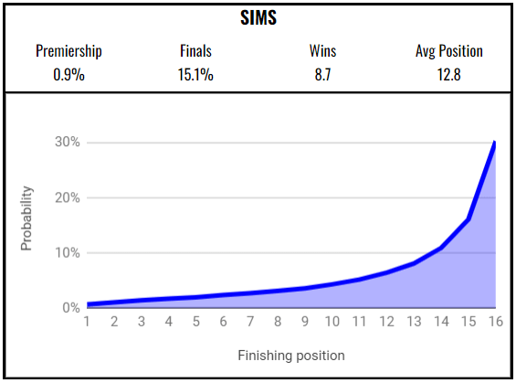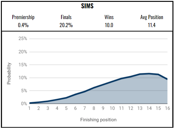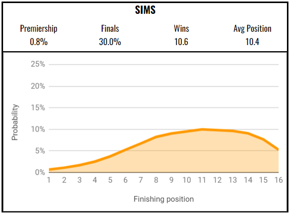 However! The Titans played like a 12-12 team in 2021. Their points difference was only -3. Their SCWP difference was positive. Holbrook had a dud start on the Coast but might have come good last year. The Sims, for whatever reason random numbers ever seem to favour a specific outcome, absolutely bloody love the Titans. Can’t get enough of them. The Titans have more wins coming than the Eels somehow and I have checked the spreadsheets multiple times. Perhaps this is all the proof you need that this is just astrology for dudes.